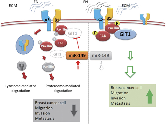 Figure 3. miR-149-GIT1 regulation pathways in regulating breast cancer metastasis. Image is adapted from ResearchGate