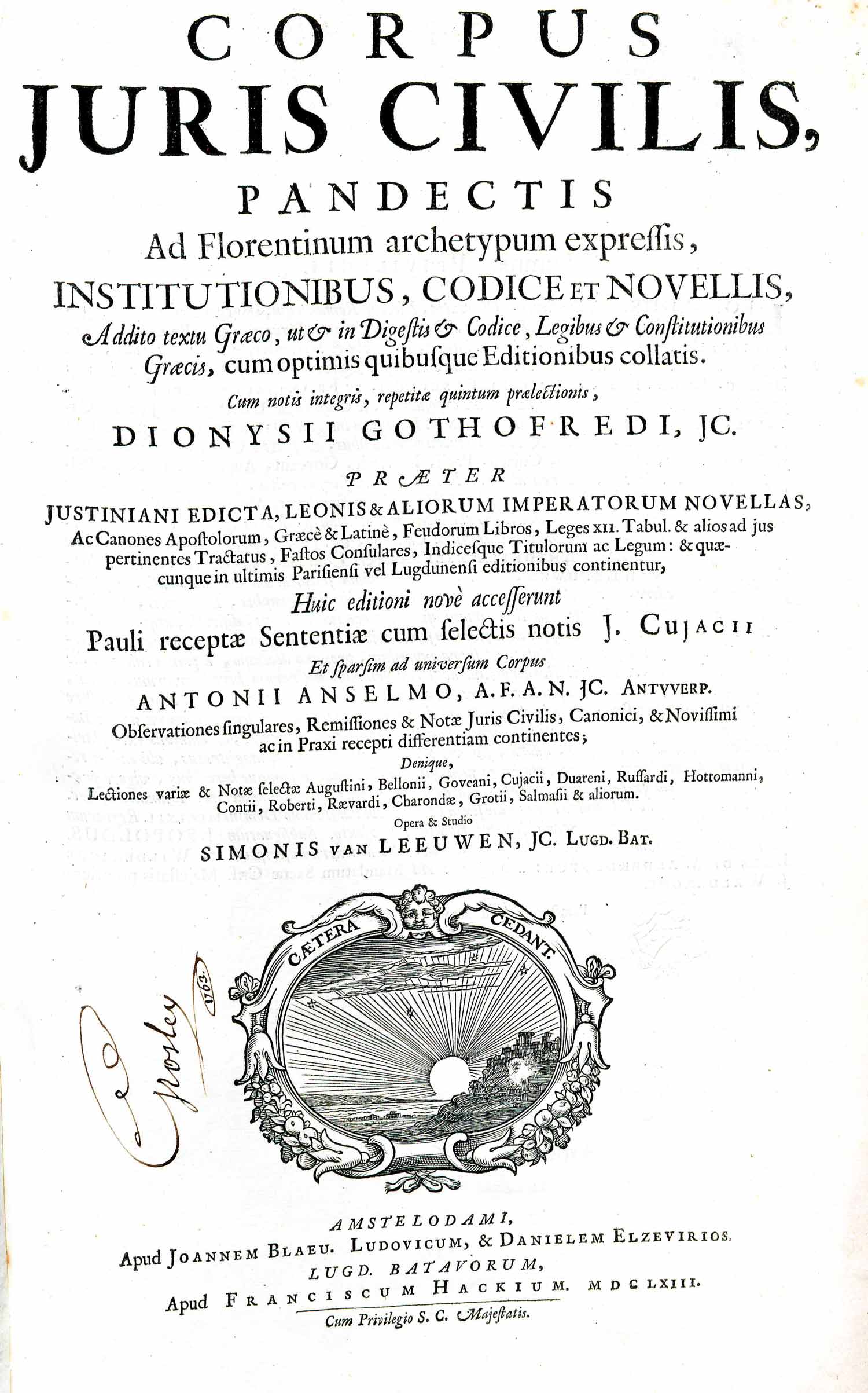 Figure 1. Front Page of a copy of ‘Corpus Juris Civilis’. Image Source: Wolf Law Library